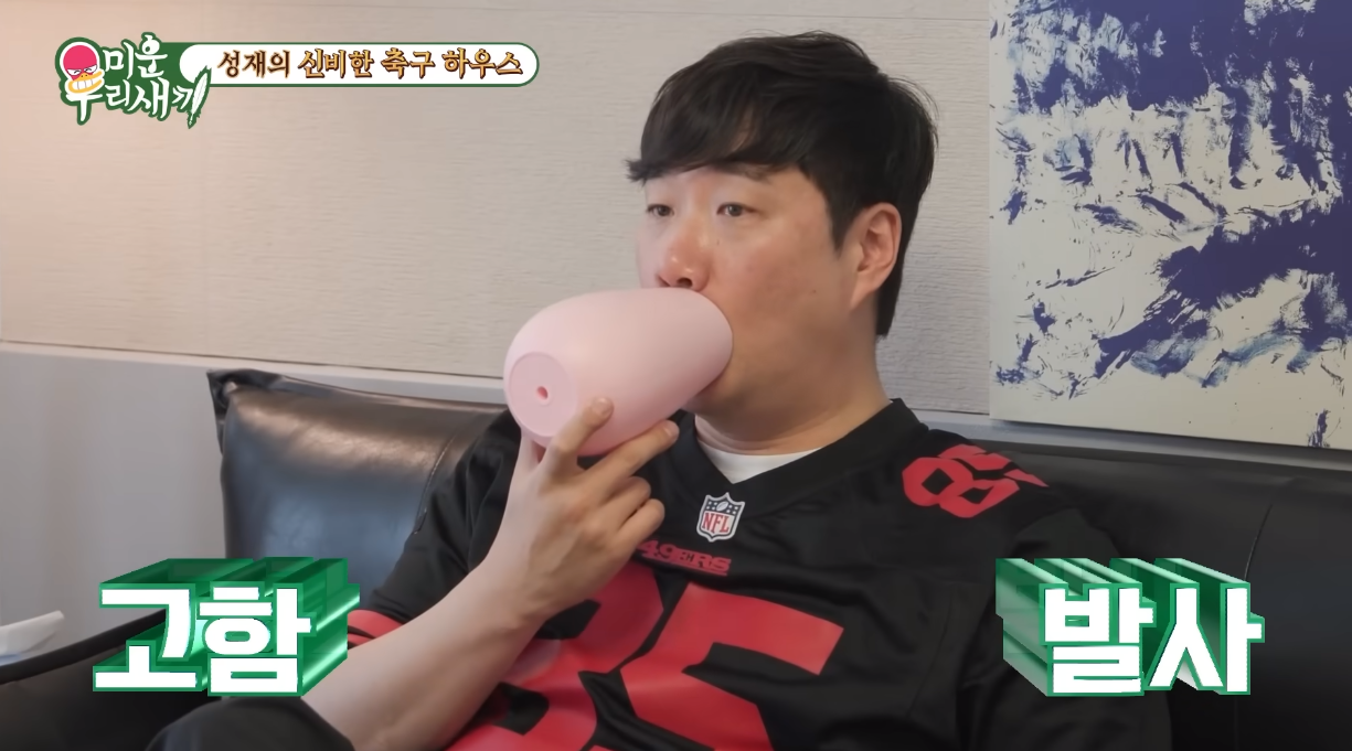중계를 보고 있는 중간에도 목소리를 크게 내야 하는 상황을 연습하면서 목소리가 커질 때 데시벨을 줄여주는 '고함 항아리'를 사용하여 소리를 크게 내는 모습을 보여 주었습니다. 소리를 질러도 소리가 크게 나는 것을 방지해 주는 저런 항아리가 있는지 처음 알았네요.