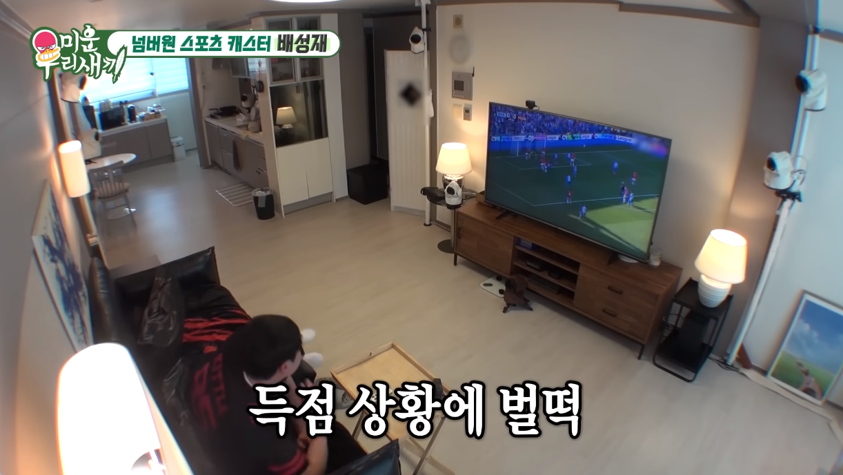 배성재 님은 아침 기상 후 바로 생수 한 병을 마시고 거실 소파에 누워 새벽에 못 본 축구를 시청하면서도 잠시도 목을 쉬지 않고 중계 연습을 하고 있었습니다.
