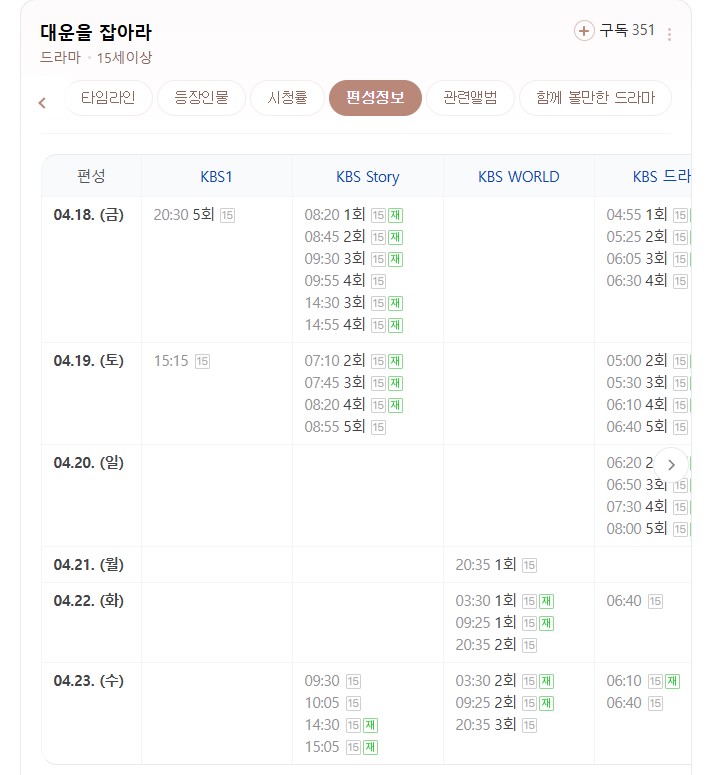 대운을 잡아라 재방송 편성표 보기- 바로가기 클릭